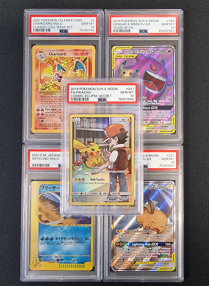 Bij CardshopRijnsburg bieden wij de mogelijkheid om via ons kaarten aan te bieden bij PSA, Becket (BGS), CGC en TAG. Voor veel mensen is het lastig om zelf naar deze bedrijven te zenden waarin wij als bedrijf een uitkomst bieden. We kunnen u als klant ondersteunen met Pre-grading en zorgen voor al de benodigde gegevens om uw kaarten veilig en snel bij één van deze bedrijven aan te bieden!
